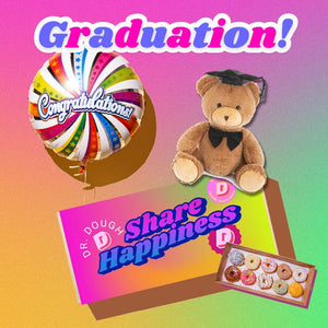 Nothing shouts CONGRATULATIONS ON GRADUATING like a surprise delivery of delicious donuts and a Balloon in our vibrant packaging!